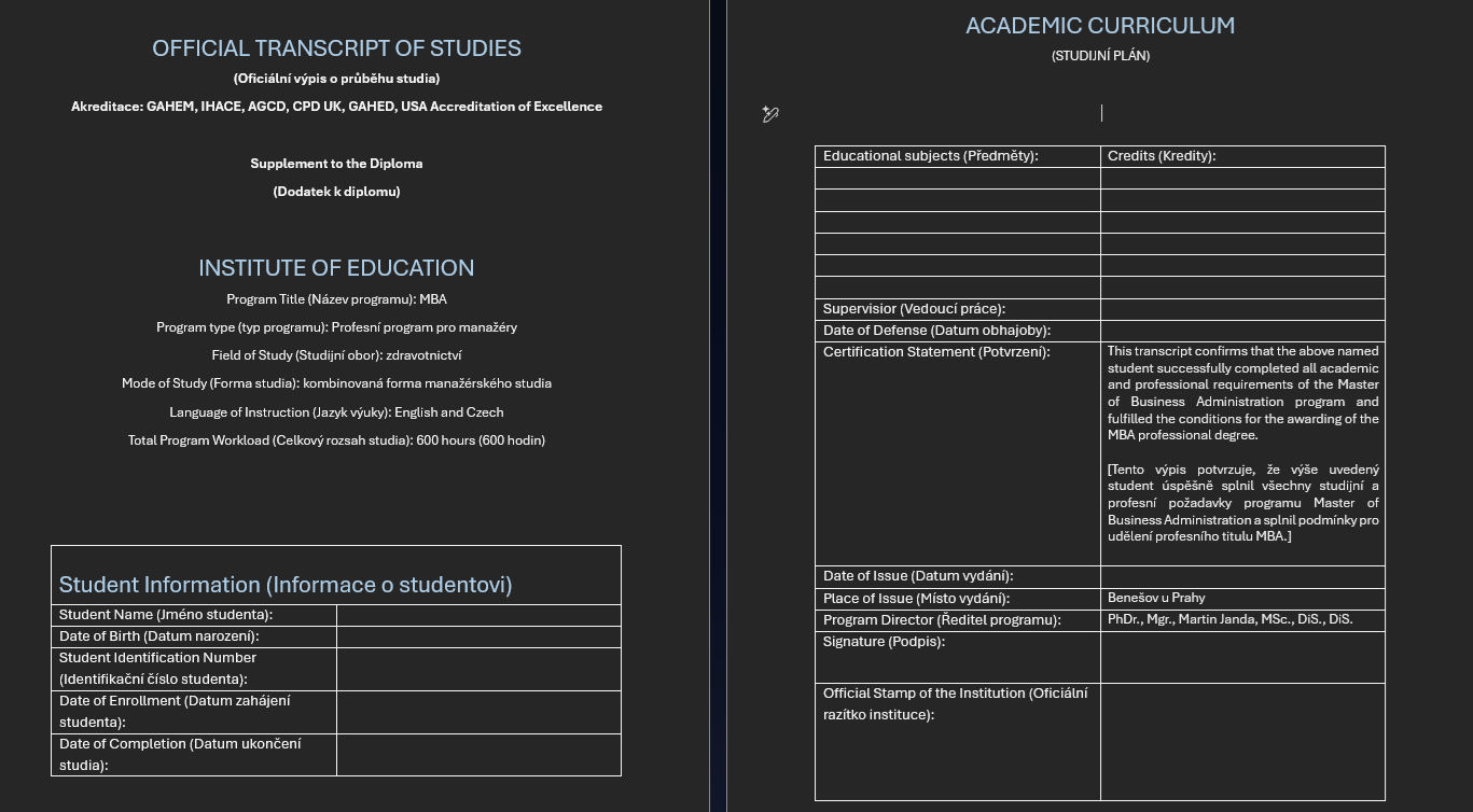 Every student has the opportunity to apply for a scholarship to study MBA, DBA, MHA, PHD, BBA, LLM. If you do not have sufficient funds to pay for your studies, you have the opportunity to apply for a 10% discount on the fee or to spread the payments over several installments without any increase.